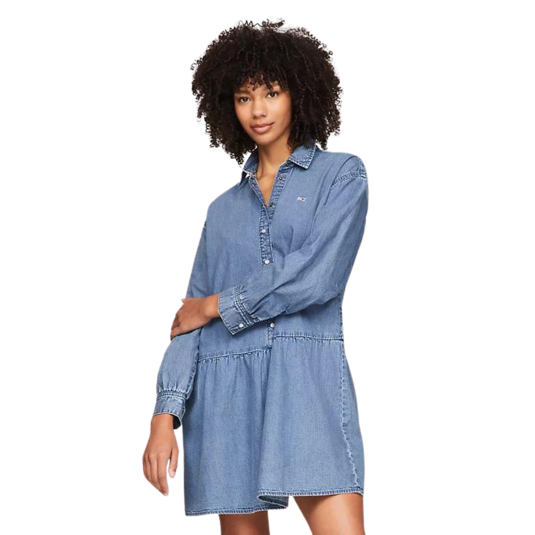 Tommy Hilfiger women’s dress. Why should jeans have all the fun? A simple silhouette becomes so much more in airy chambray with a relaxed shoulder, and a dropped waist. Part of our Tommy Jeans collection.