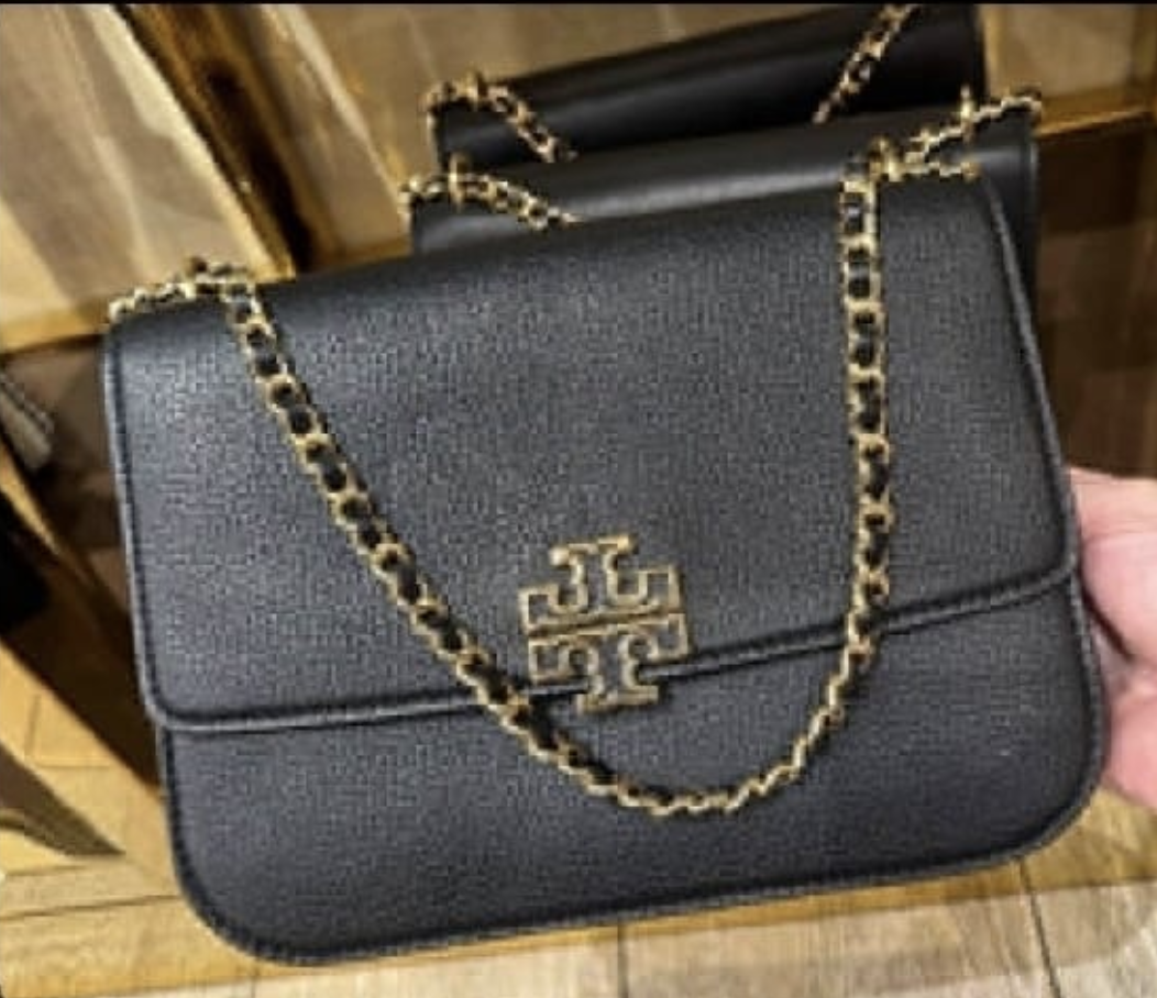 Tory Burch Black Pebbled Leather Chain Shoulder Bag – Black