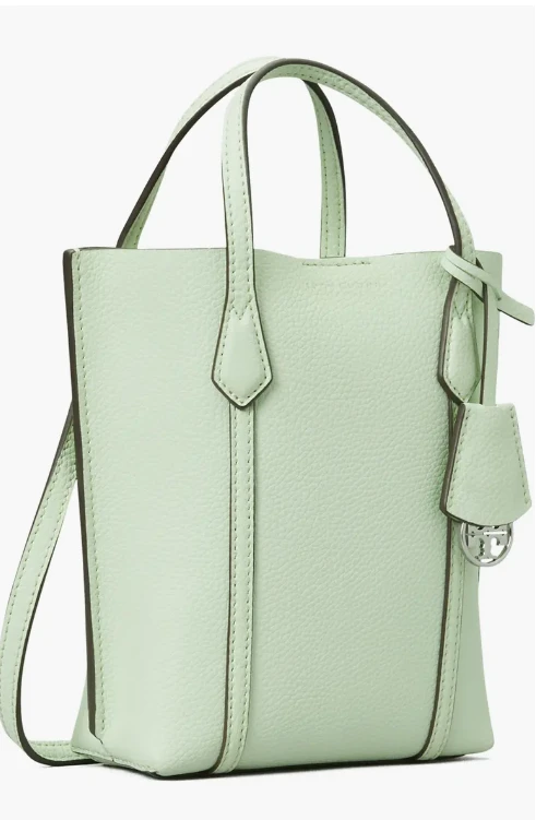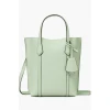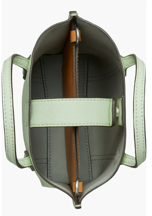 Gleaming logo hardware and richly textured leather lend signature appeal to a scaled-down bag fashioned with an optional strap for crossbody wear.