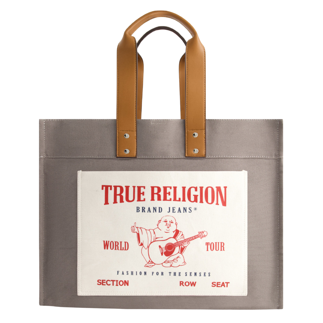 The iconic logo patch adds a well-traveled finish to a versatile canvas tote bag featuring a squared base for maximum interior space.