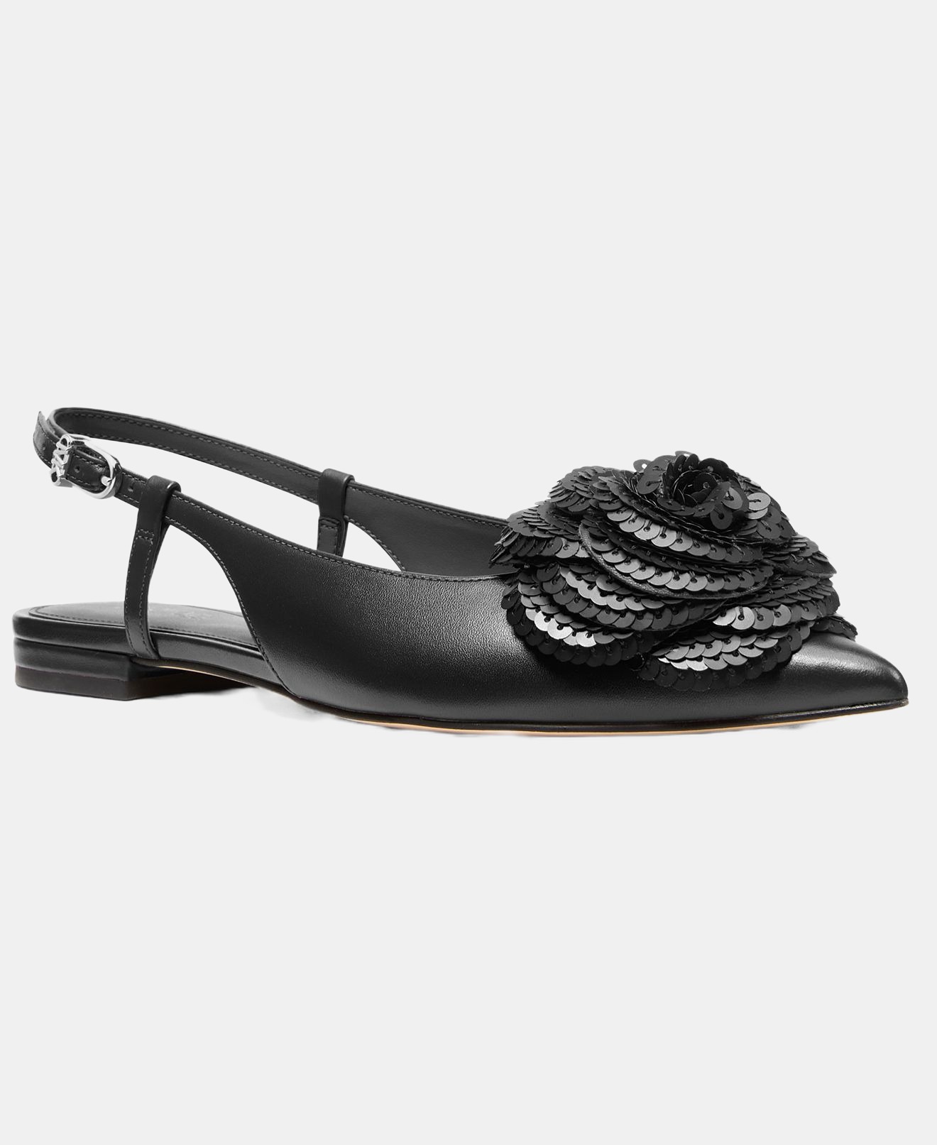 Presenting a pointed toe and a sleek slingback design, these Michael Kors flats provide elegant and comfortable wear. The buckle closure adds a secure and decorative detail.