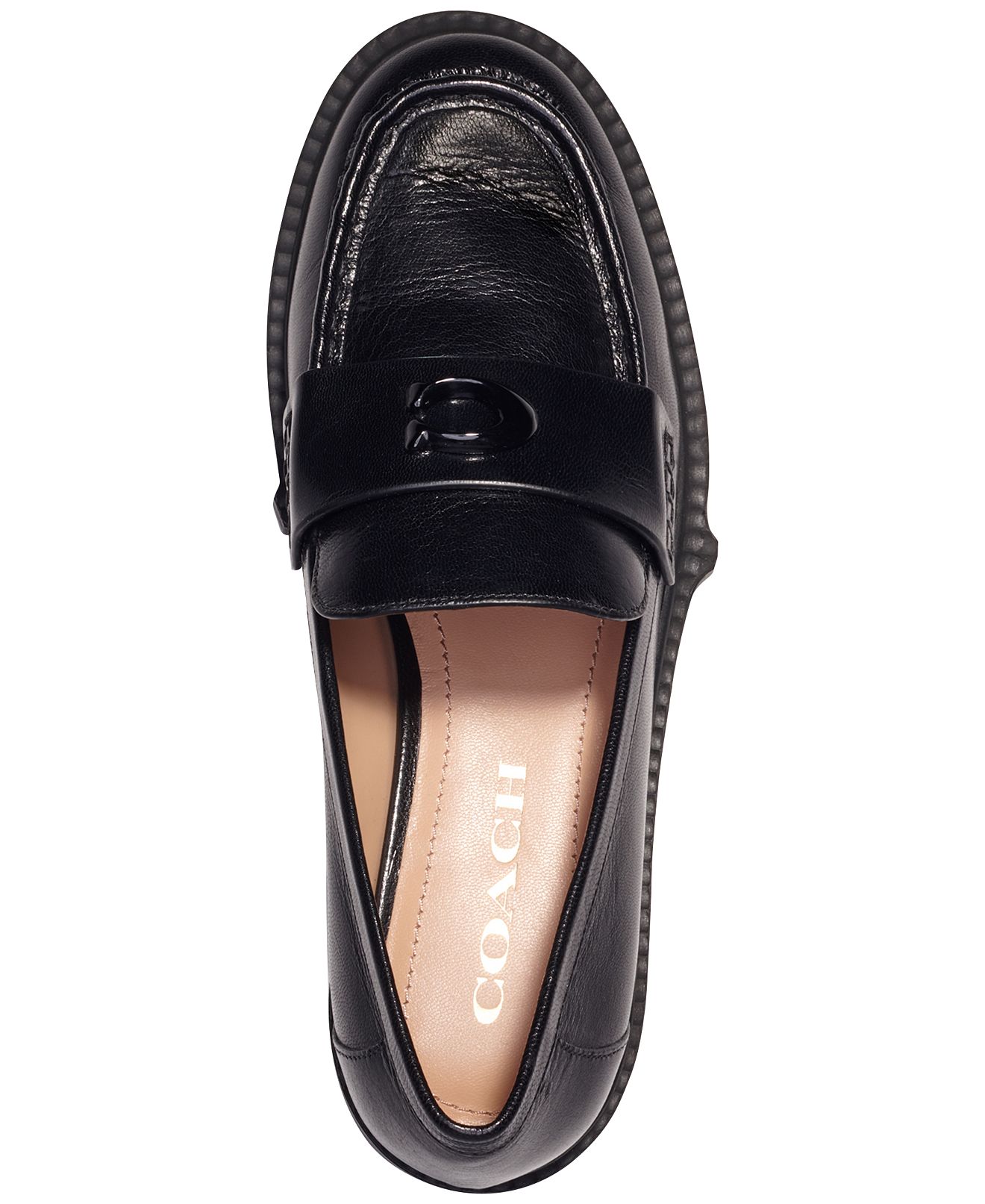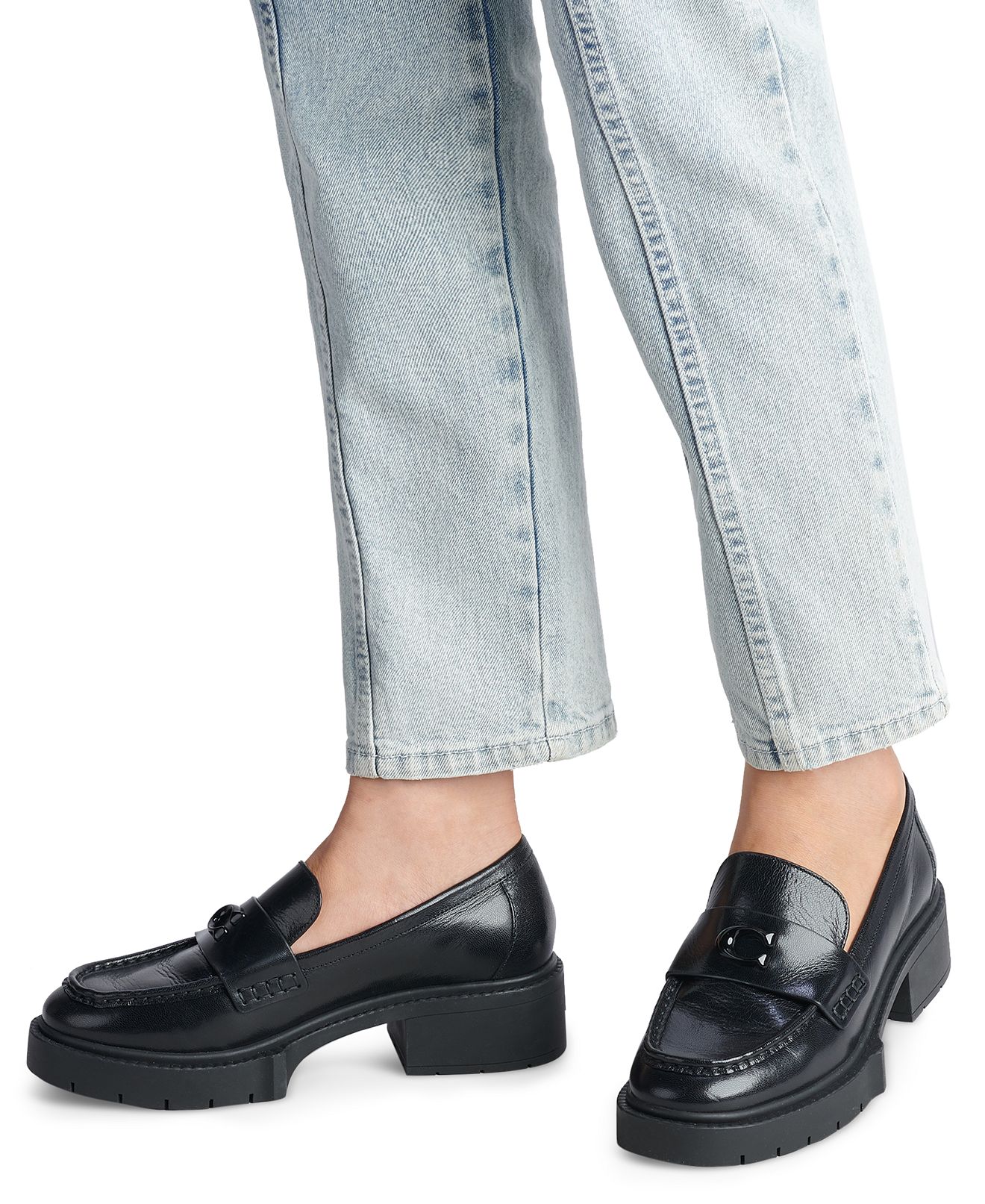 Make a stylish initial impression with the shiny C trim that sets apart the COACH Leah platform lug sole loafers. The Leah loafers by COACH blend classic appeal with updated details and versatile slip-on styling.