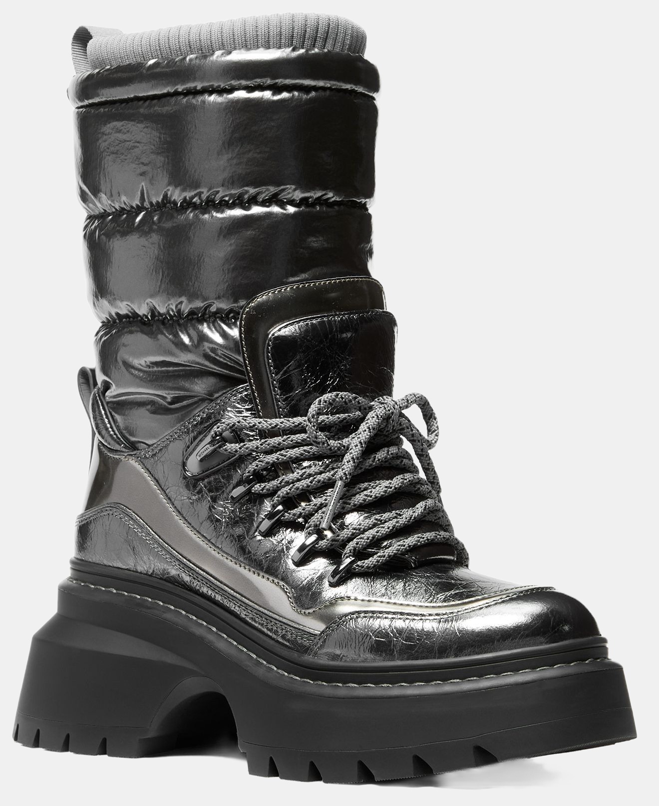 Built with a lace-up closure and a round toe, these Michael Kors boots offer a rugged yet refined aesthetic. The platform and heeled design provide a substantial and confident lift.