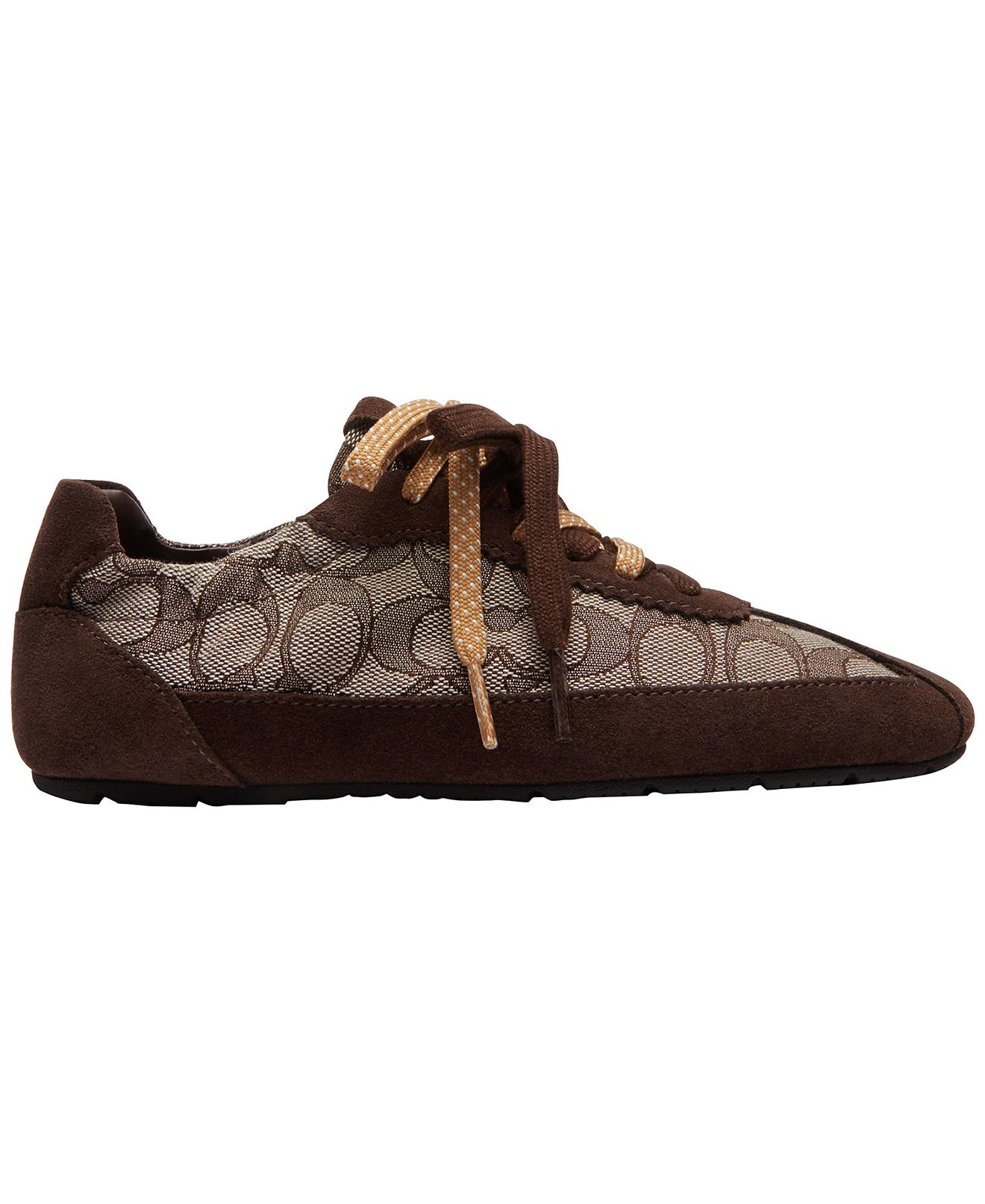 Elevated everyday style distinguishes these COACH soft sneakers, which feature a lace-up closure for a secure fit. The round toe allows relaxed movement, while a flat foundation maintains steady balance.